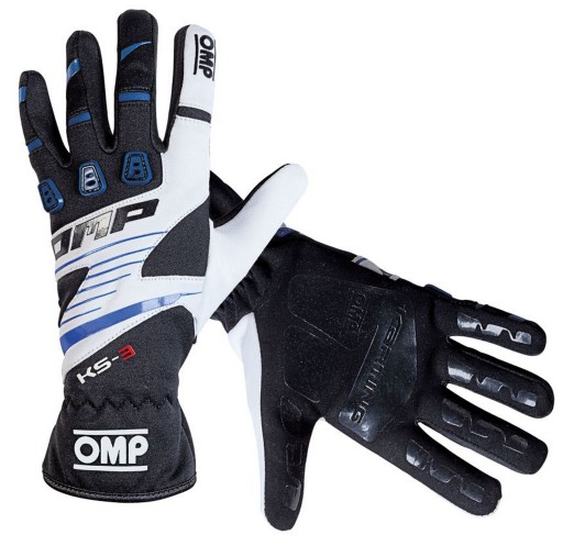 Rękawiczki firmy OMP KS-3. Wykonane z elastycznego materiału dopasowującego się do dłoni, powierzchnia wewnętrzna ręki wyłożona w gumie silikonowej o wysokiej przyczepności. Idealne do kartingu, KJS, driftu czy off road-u.