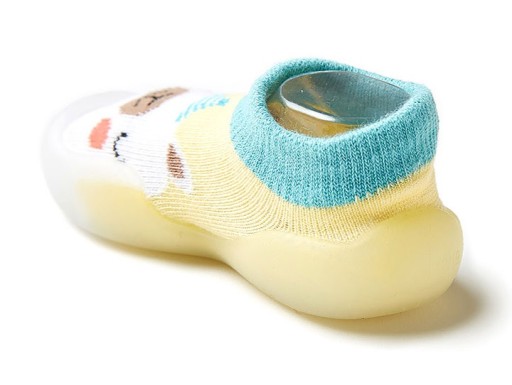 Gumowa podeszwa jest miękka oraz elastyczna, przy pięcie nieco wyższa, dodatkowo buciki posiadają zabezpieczenie na paluszki.