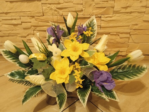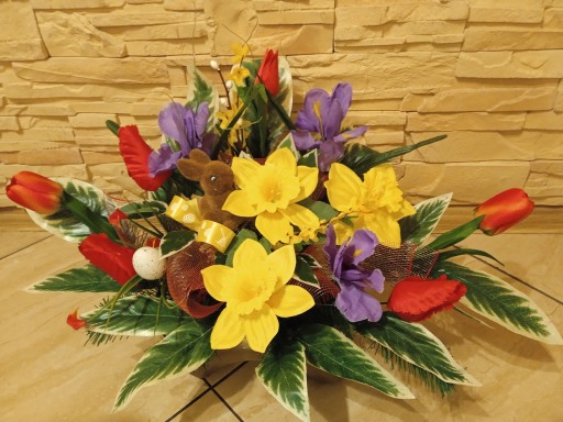 - kwiaty sztuczne dobrej jakości- żonkil, tulipan, irys
