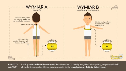 - Prosimy o nie dodawanie żadnych centymetrów niezależnie od miesiąca, w którym dokonywany jest pomiar dziecka. Uwzględniamy fakt, że dzieci rosną i na podstawie 20-letniego doświadczenia dodamy ile trzeba.