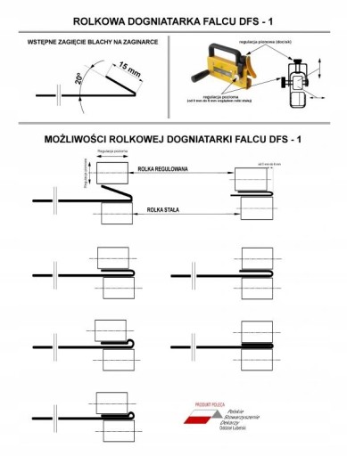 - Rolkowa dogniatarka (felownica) DFS-1 bardzo szybkie i wygodne narzędzie, służące do dokładnego dociśnięcia zagiętego wcześniej felcu w jednym cyklu roboczym.