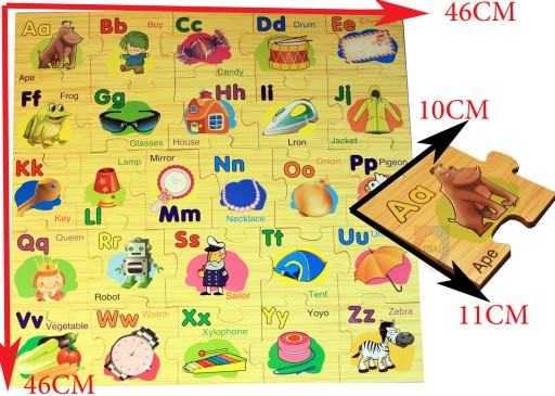 Zabawa puzzlami nie musi mieć tylko na celu ułożenie obrazka ale także dopasowania elementów i nauki języka obcego. Ogólnie wiadomo, że dzieci najlepiej uczą się poprzez zabawę więc puzzle Firmy EMAJ zapewniają frajdę układania i dopasowywania obrazków zaczynających się na daną literkę oraz napisaną w języku angielskim.