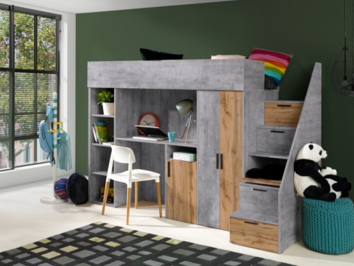 KONKRET 14 двухъярусная кровать-мезонин с письменным столом