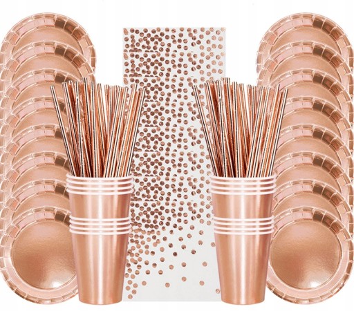 НАБОР БУМАЖНЫХ ТАРЕЛОК И ЧАШЕК РОЗОВОГО ЗОЛОТА