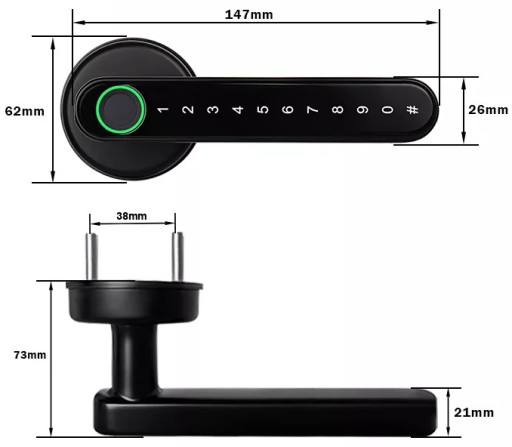 Klamka - zamek szyfrowy kodowy z czytnikiem odcisku palca