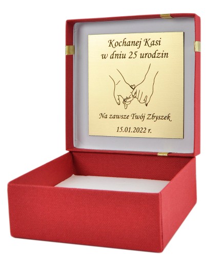 Aby prezent był wyjątkowy do biżuterii dodajemy pudełeczko z grawerowaną tabliczką.