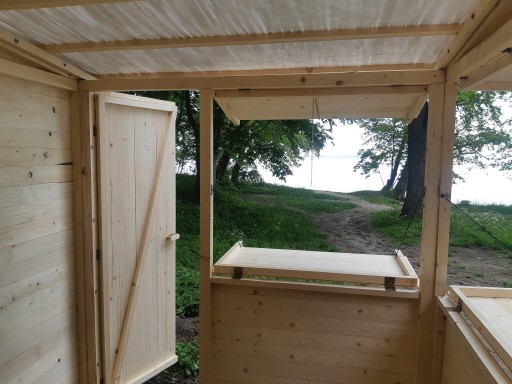 Domki można wykorzystać w formie stoiska handlowego lub jako domek narzędziowy/altanka na działkę, do ogrodu.