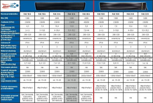 Promienniki podczerwieni EKONAIR produkowane są przy użyciu unikalnej technologii z wykorzystaniem nowoczesnego designu. Rdzeń grzejnika wykonany jest ze specjalnego materiału wytwarzanego w technologii stosowanej w lotnictwie. Współczynnik efektywności energetycznej jest bardzo wysoki na poziomie 99%. Jest to nowy typ bardzo wydajnych i energooszczędnych grzejników. Powierzchnia paneli grzejnych wykonana jest ze specjalnego nano-materiału. Warstwa ta powoduje wzrost wskaźnika promieniowania podczerwonego aż do 86%. Promienniki EKONAIR są ciche, energooszczędne i komfortowe przez co znajdują bardzo szerokie zastosowania zarówno w przemyśle jak i w zastosowaniach domowych.