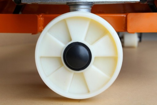Przednie kółka oraz Rolki jezdne wykonane z są nylonu co zapewnia lekką pracę, niskie opory toczenia oraz powolne zużycie. Koła nylonowe są twardsze i bardziej wytrzymałe oraz znacznie tańsze w serwisowaniu.