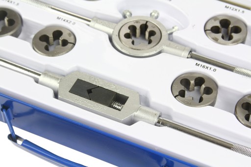 Zestaw 110 gwintowników i narzynek. Wykonane z najwyższej jakości utwardzanej stali, sprawdzi się w każdym warsztacie oraz garażu. Zestaw służy do naprawy połączeń gwintowanych każdego rodzaju w większości materiałów. Dzięki dużej ilości elementów zestaw jest bardzo uniwersalny.
