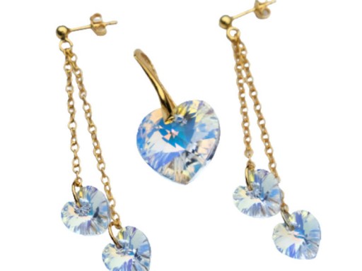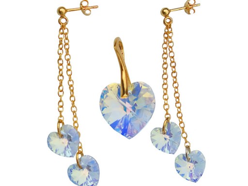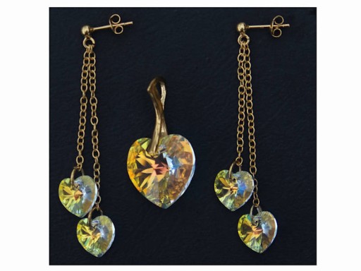 KOMPLET SERCE OPALIZUJĄCE ZŁOTEM SWAROVSKI CRYSTAL