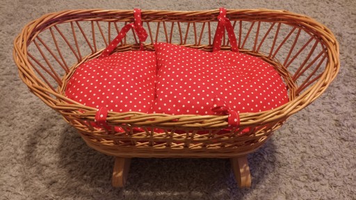 DO KOŁYSKI DOŁĄCZONE SĄ DREWNIANE PŁOZY DO BUJANIA ORAZ TROCZKI W KOLORZE POŚCIELI DO ZAWIESZENIA KOŁYSKI