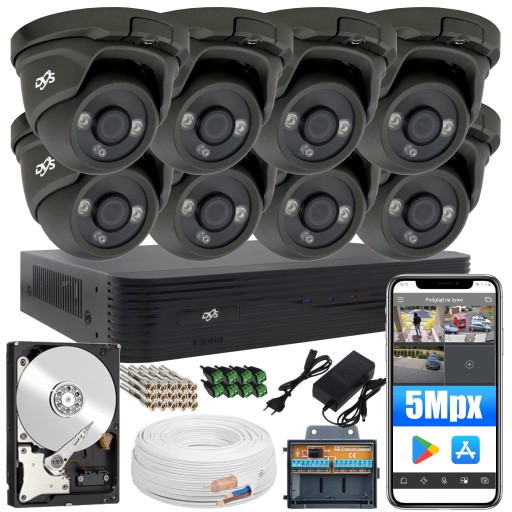 КОМПЛЕКТ МОНИТОРИНГА ДЛЯ 8 НАРУЖНЫХ МЕТАЛЛИЧЕСКИХ КАМЕР 5MPX УДАЛЕННОГО ПРОСМОТРА