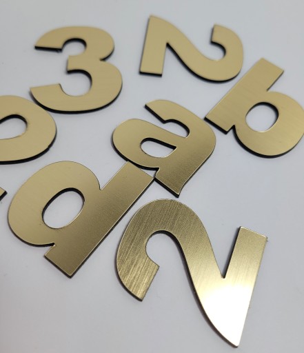 Cyfry wykonane z laminatu (bardzo trwałe tworzywo kompozytowe ) o wysokości 10 cm, grubości 1,6 mm.