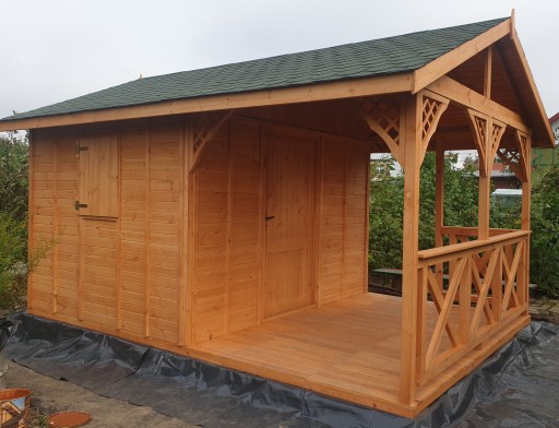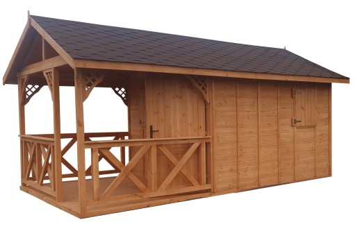 - Wymiary domku z tarasem: 5x3 m