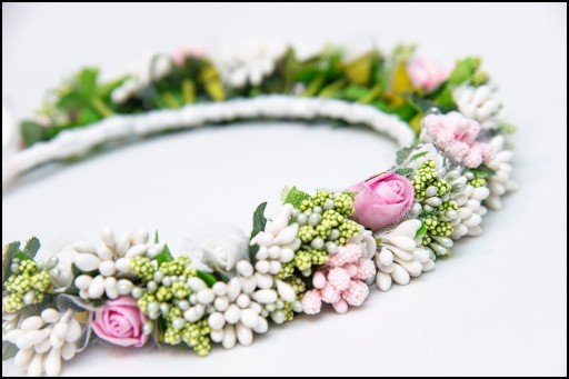 Przedmiotem oferty jest piękny wianek komunijny wykonany ręcznie z kwiatów piankowych oraz dodatków florystycznych.