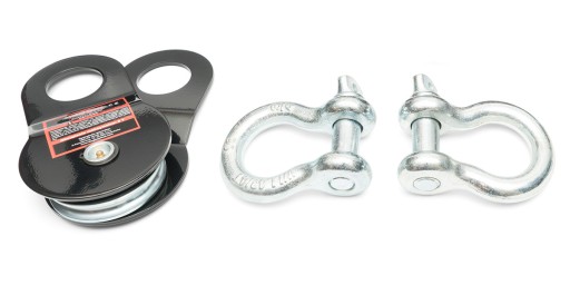 Zestaw ten umożliwia podwojenie siły uciągu wyciągarki w sposób pokazany na powyższej ilustracji. Przyda się również, gdy chcemy nadać inny kierunek linie, która nawija się na bęben pod dużym kątem.