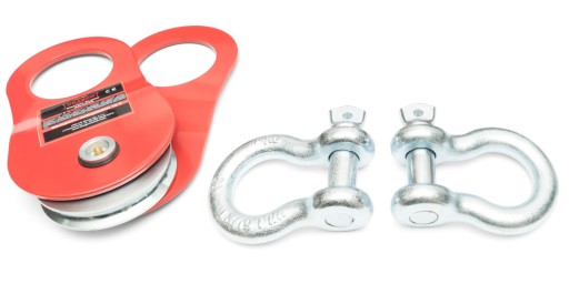 Zestaw ten umożliwia podwojenie siły uciągu wyciągarki w sposób pokazany na powyższej ilustracji. Przyda się również, gdy chcemy nadać inny kierunek linie, która nawija się na bęben pod dużym kątem.