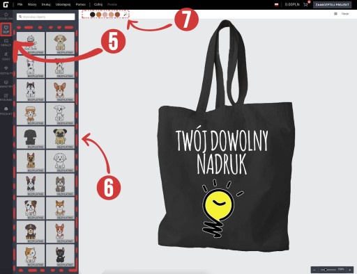 2️⃣ (2) - Każdą grafikę możesz edytować, zmieniać jej położenie, rozmiar jak również kolorystykę (możesz dowolnie pokolorować każdy element)