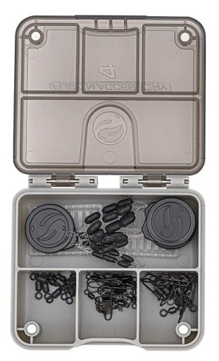 To 4-komorowe pudełko na akcesoria pomieści wszelkiego rodzaju drobne akcesoria, takie jak krętliki, stopery i adaptery.