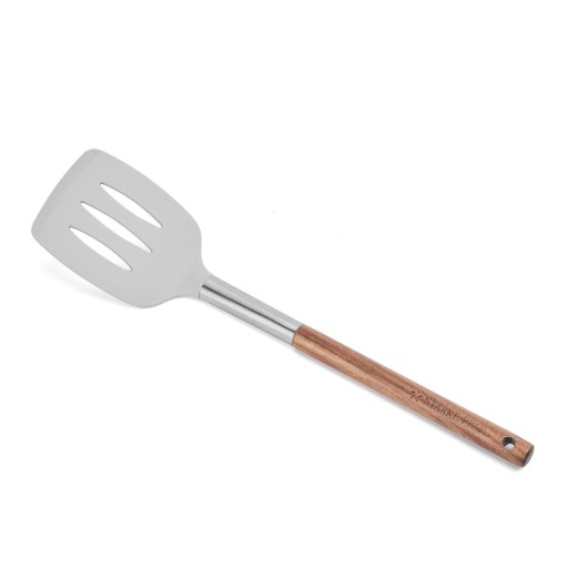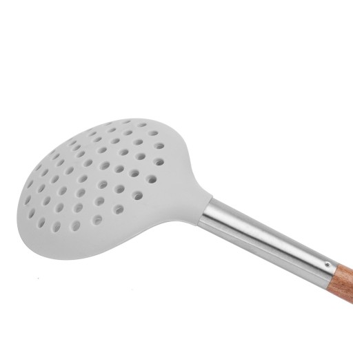 Pozostałe informacje: - rączki wykonane z drewna akacjowego, - mocowanie ze stali nierdzewnej, wykończenie satynowe, - przybory silikonowe, - użytkowanie w zakresie temperatur: od - 20 st. do + 220 st.