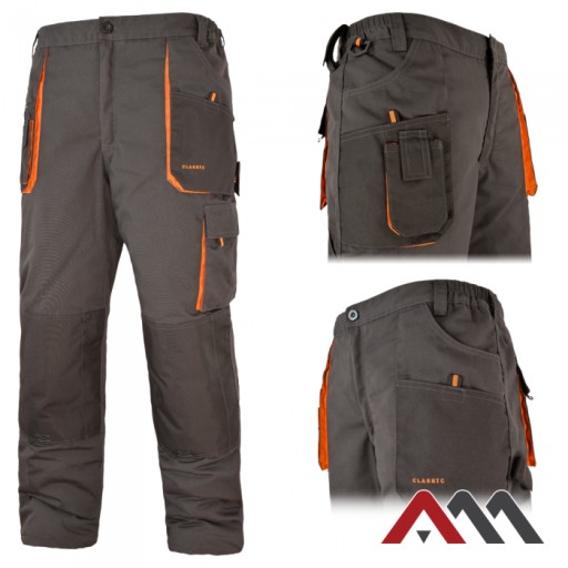 Spodnie CLASSIC-T to odzież niezwykle funkcjonalna i bardzo komfortowa w użytkowaniu w czasie wielu prac w każdych warunkach. Solidne wykonanie gwarantuje zadowalające użytkowanie spodni nawet w czasie najbardziej intensywnych prac. Dużym atutem modelu CLASSIC-T jest bardzo niska kurczliwość, dzięki czemu spodnie nie stracą swojej formy nawet po wielokrotnym praniu. Odzież posiada liczne wzmocnienia, co sprawia, że bez wątpienia ich użytkowanie usatysfakcjonuje wiele osób, nawet tych najbardziej wybrednych pod względem doboru roboczej odzieży.