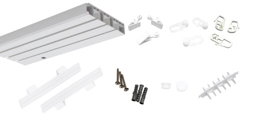 ✔️ Szyna 3 torowa w kolorze białym o długości 430 cm (2x 215cm) Karnisze o długości do 250 cm dostarczamy w całości, a powyżej 250 cm w częściach