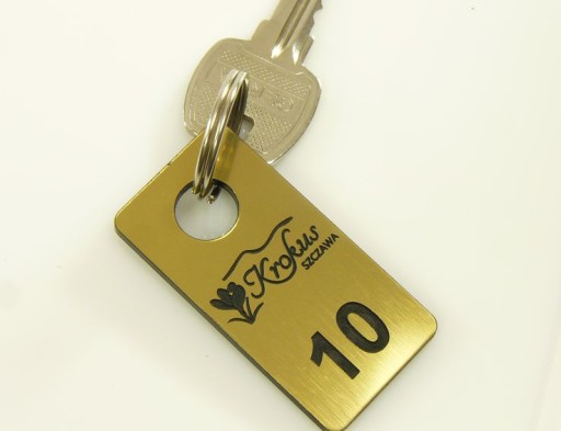 Jednostronnie grawerowany brelok wykonany z laminatu grawerskiego.