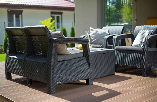 Elegancki i funkcjonalny zestaw mebli ogrodowych Corfu Box Set to idealna propozycja dla przestrzeni ogrodu, tarasu czy balkonu. Zestaw zawiera dwa wygodne fotele i dwuoosobową sofę z profilowanym oparciem, szerokimi podłokietnikami i miękkimi poduchami na siedziskach oraz praktyczny, niski stolik kawowy z funkcją pojemnego schowka.