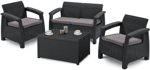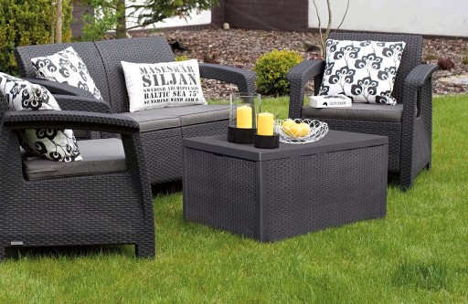 ZESTAW MEBLI OGRODOWYCH CORFU BOX + PODUSZKI DLA 4 OSÓB marki ALLIBERT