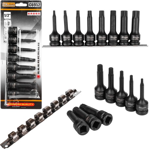 НАБОР ИЗ 8 ЭЛЕМЕНТОВ ШПЛЕНКОВЫХ УДАРНЫХ ГОЛОВОК 1/2 M5-M18 + ПОЛОСКА