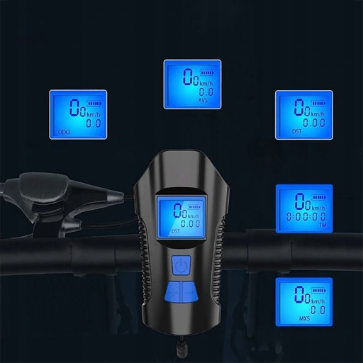 Zestaw Lampek rowerowych przednia oraz tylna z funkcją dzwonka, licznika i prędkościomierza