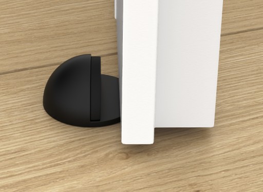 Dzięki zastosowaniu samoprzylepnej warstwy na spodzie odbojnika montaż jest szybki i łatwy - nie wymaga użycia narzędzi. Polecany szczególnie do pomieszczeń, gdzie nie chcemy lub nie możemy wiercić otworów, np. przy ogrzewaniu podłogowym.