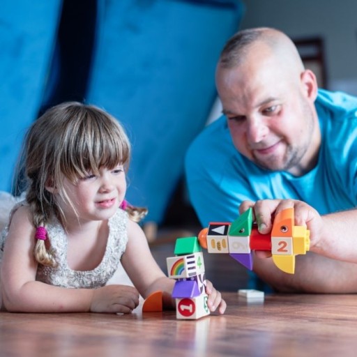 Klocki w różnych kolorach i kształtach, z nadrukowanymi cyframi, obrazkami, zostały stworzone z myślą o dzieciach, aby wspierać ich rozwój i kreatywność.