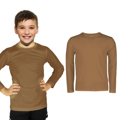 BRĄZOWA BLUZKA 110 DLA CHŁOPCA DZIEWCZYNKI DŁUGI RĘKAW BAWEŁNA GŁADKA