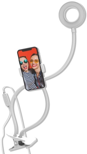 Ta elastyczna 3-calowa (7,6 cm) lampa pierścieniowa z uchwytem na telefon świetnie sprawdza się w nagrywaniu wideo, transmisjach na żywo i nie tylko.