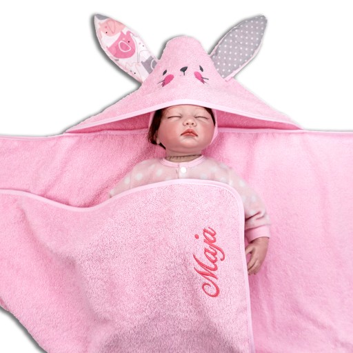 Każde okrycie posiada uszka wykonane z innej tkaniny, dlatego każde okrycie kąpielowe jest inne i wyjątkowe.