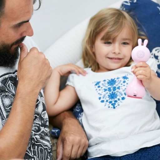- Miękkie uszy króliczka świecą delikatnym światłem zmieniającym kolory i dodają otuchy przy zasypianiu.