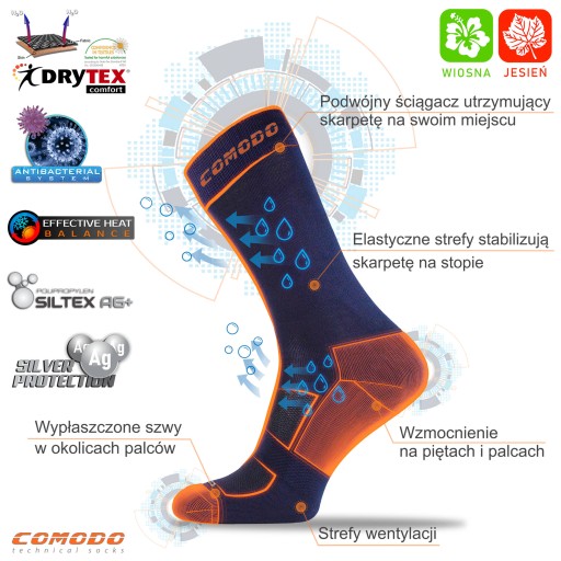 Skarpety motocyklowe Comodo model MTB3 przeznaczone do jazdy w sezonie przejściowym.