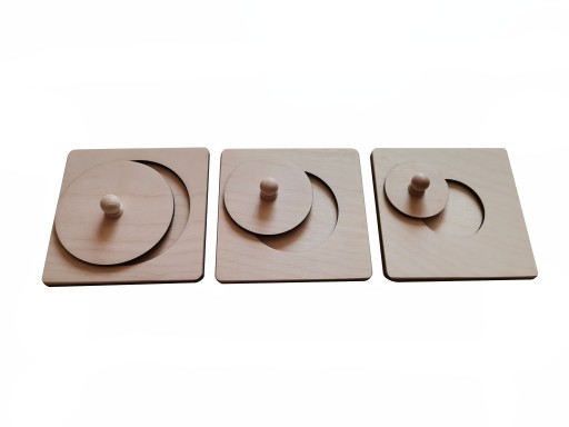 Zestaw trzech pojedynczych układanek: Koło duże, średnie oraz małe