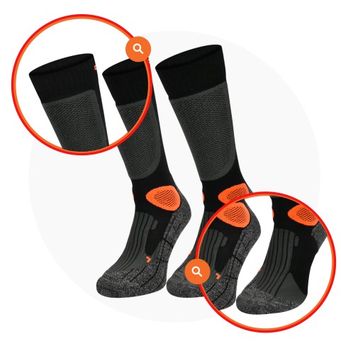 ✔️ Dobre dopasowanie do stopy: Elastyczna konstrukcja stabilizuje skarpetę i zapobiega jej zsuwaniu się w bucie.