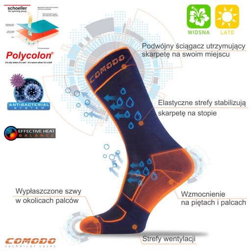 Skarpety motocyklowe Comodo model MTB2 przeznaczone do jazdy w ciepłe dni.