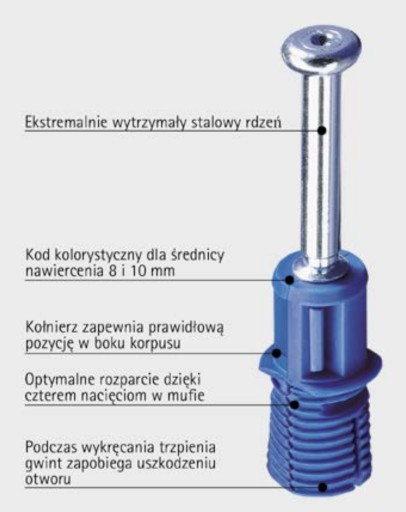 - mufa rozporowa do średnicy nawiercenia 10 mm