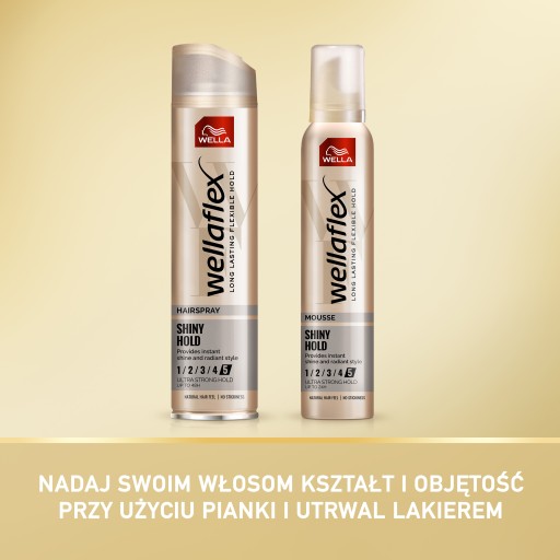 Zakochaj się w delikatnym dotyku bez poczucia lepkości i osiągnij efekt mocnego utrwalenia nawet do 24 godzin. Zachowaj elastyczną fryzurę z pełną swobodą ruchu. Dzięki wygodnej aplikacji i łatwemu wyczesywaniu Wellaflex Shiny Hold jest najlepszym sposobem na szybką stylizację. Pomaga także chronić włosy przed promieniowaniem UV, zapewniając im naturalny, zdrowy wygląd każdego dnia.