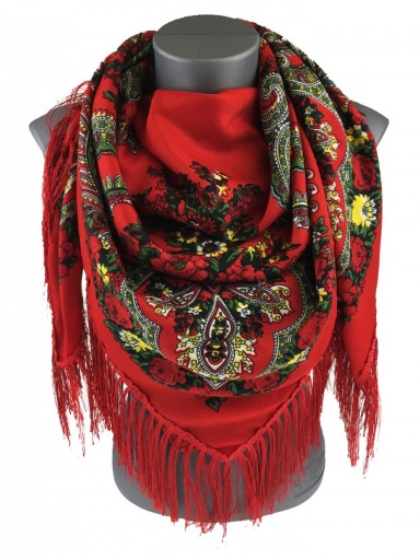 Na tej aukcji dostępna jest damska chusta folklorystyczna - szara w motywy ludowe