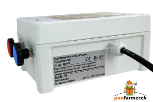 ✨ Mocny elektryzator sieciowy na kuny i wydry AGRI-4000 (4,4 Jule)