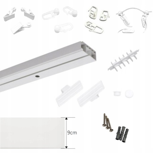 - Aukcja dotyczy kompletnego karnisza sufitowego PCV z osłoną 9cm wraz z pełnym wyposażeniem o długości 120 cm