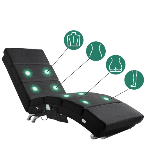 Szezlong wyróżnia się funkcjami masażu i ogrzewania. Dzięki różnym punktom masującym, strefom i intensywności, a także dołączonemu pilotowi, leżak z pewnością zapewni Ci najwyższy komfort.