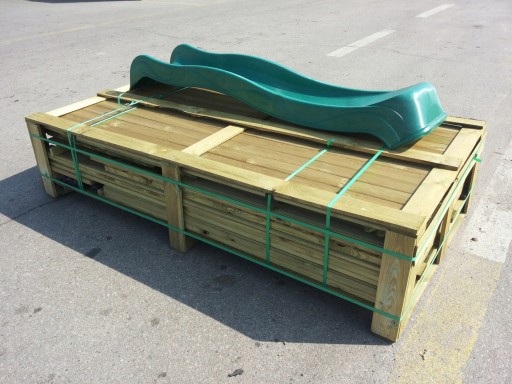 - Drewno impregnowane ciśnieniowo bezpiecznym dla dzieci środkiem