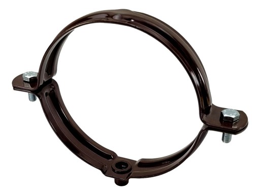 Element systemu rynnowego, wykonany z najwyższej jakości stali, malowany proszkowo. Służy do mocowanie rury spustowej do ściany budynku.
